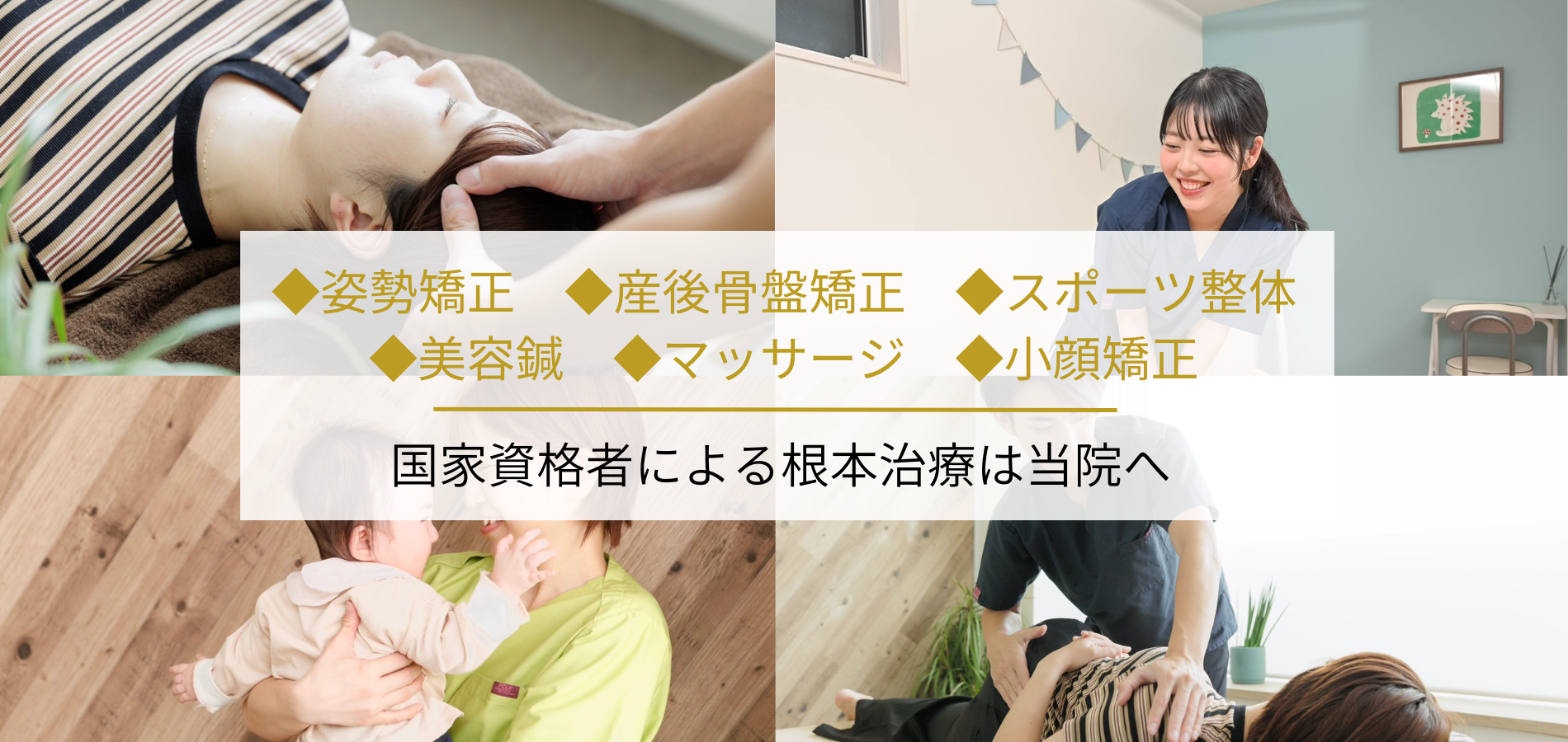 当院オリジナルの「痛みが少なくバキバキしない施術」でデスクワークでの首肩のつかれ、産後・子育てパパさんママさんのお身体のお悩み、スポーツでのお身体の痛み、パフォーマンスアップなど幅広い症状に対応致します。